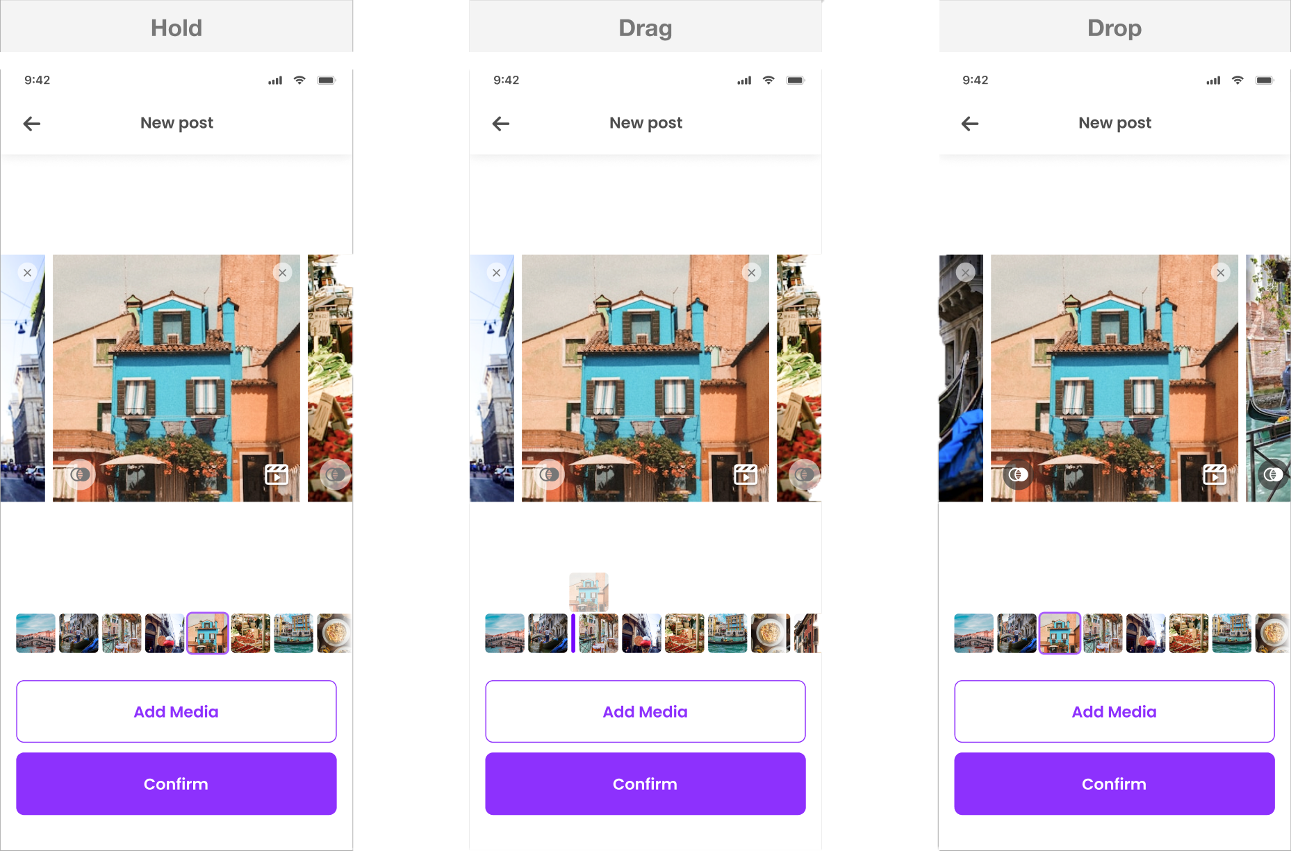 Rather than introducing a new flow for multi-media posts, I layered the feature onto the existing structure.